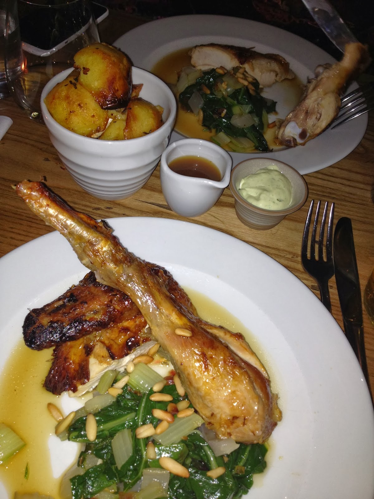 We then had a salad of ndjuja, honey parsnips and quail's eggs, and bavette with braised onions and trevise. The steak was my favourite dish - the bavette being incredibly tender and full of flavour and slow cooked onions pretty much always steal my heart. But the nduja salad put up a pretty good fight - the quail's eggs were perfectly cooked, the parsnips were sweet and the nduja was spicy, with some nice peppery and robust greens to make up the salad part. The spicy chorizo-like oil did a good job of making us feel like we weren't eating anything too healthy for our celebratory meal.